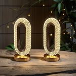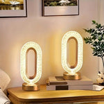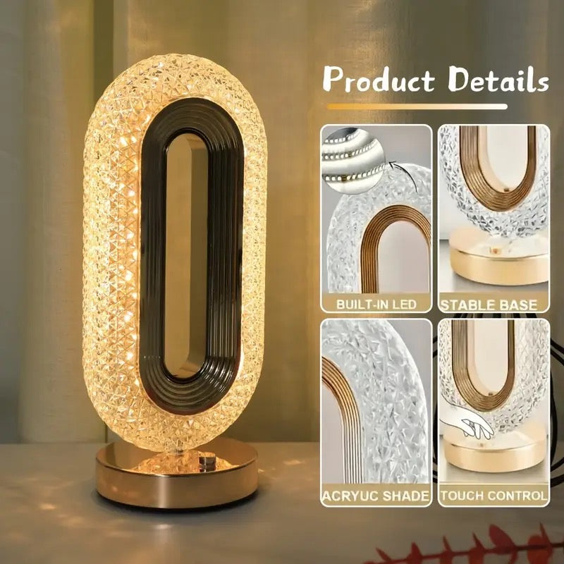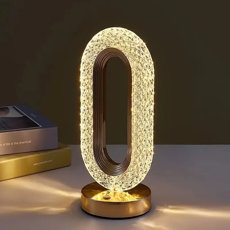 Crafted with a shimmering crystal design and soft golden glow, this sculptural table lamp transforms any room into a cozy sanctuary. Its oval silhouette radiates elegance and warmth — a true centerpiece that catches the light and the eye.